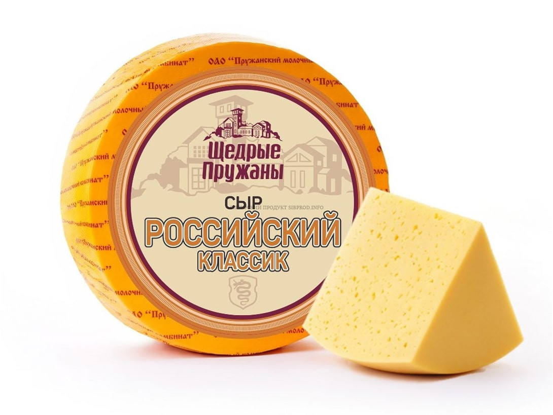 Сыр Российский с массовой долей жира в сухом веществе 50% Вырабатывается по ТУ BY 200027027.015-2013.