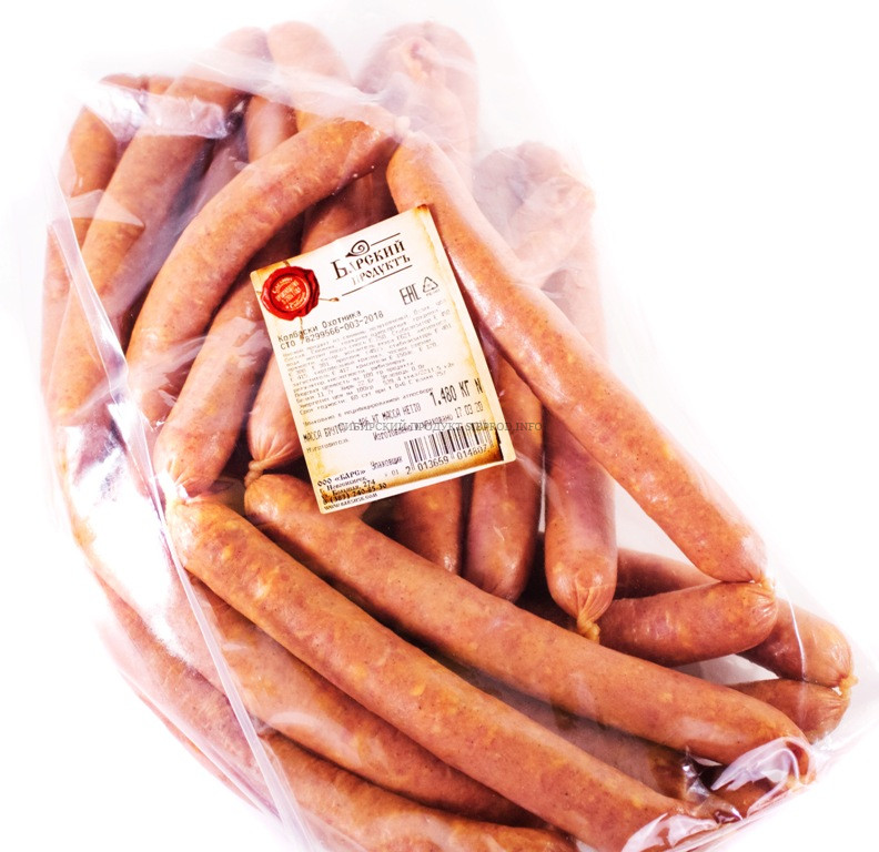 Состав: Свинина, говядина односортная грудинка, вода, нитрит посол смесь Е 250. Стабилизатор Е 450, пряности, сахар, усилитель вкуса Е 621, антиокисл. Е 300, протеин (45%), стабилизаторы Е 401, Е 415, картофельный крахмал, чеснок свежий, загуститель Е 417, краситель Е150dc? Е 120, регулятор кислотности, рубизимруж.