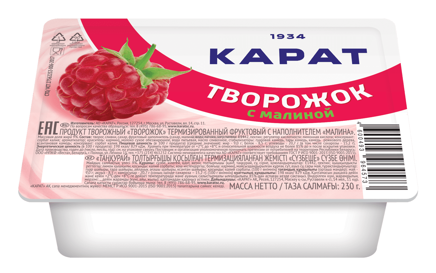 | Тип молочного продукта | Творожный продукт |